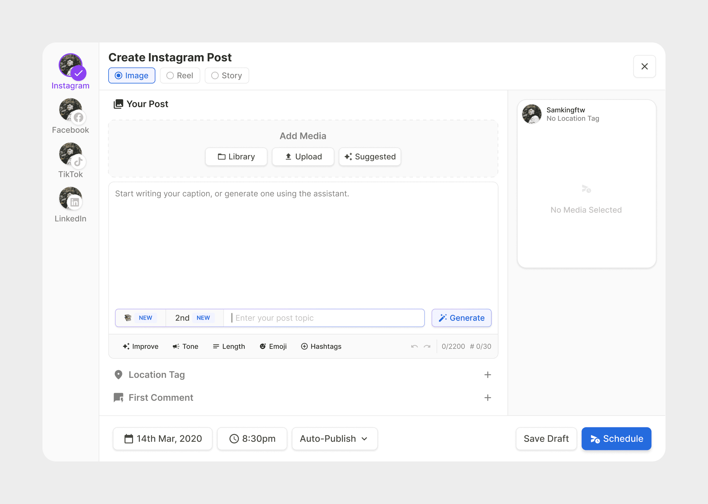 Generate social media content from a caption.
