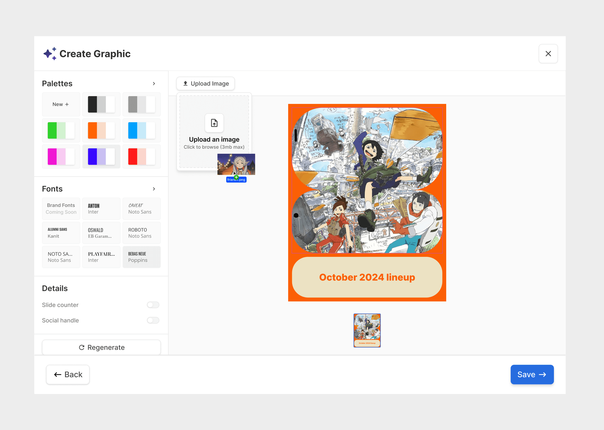 Although editing options are limited, partially by design and partially by a lack of time, you can easily create eye catching graphics that meet your communities standards.