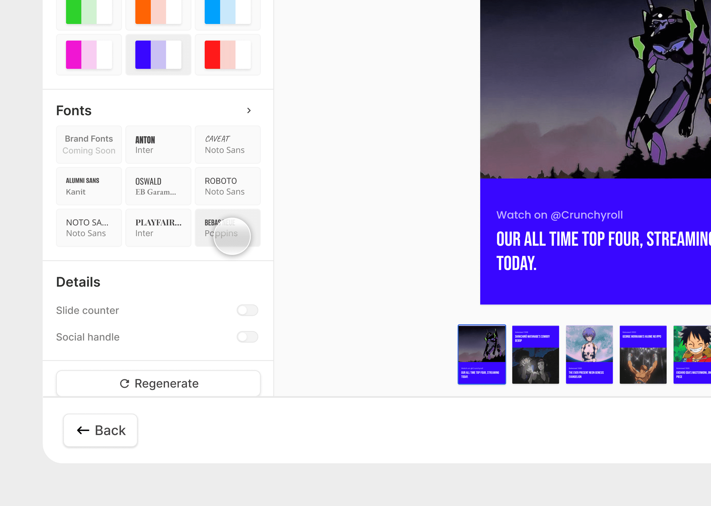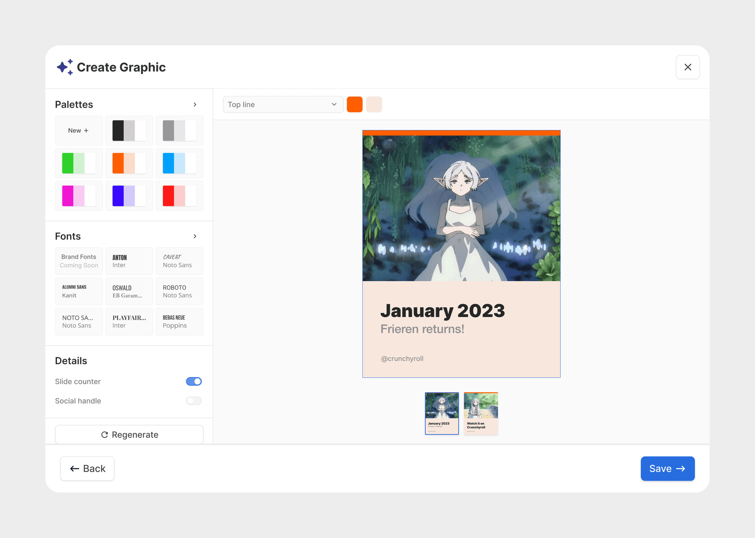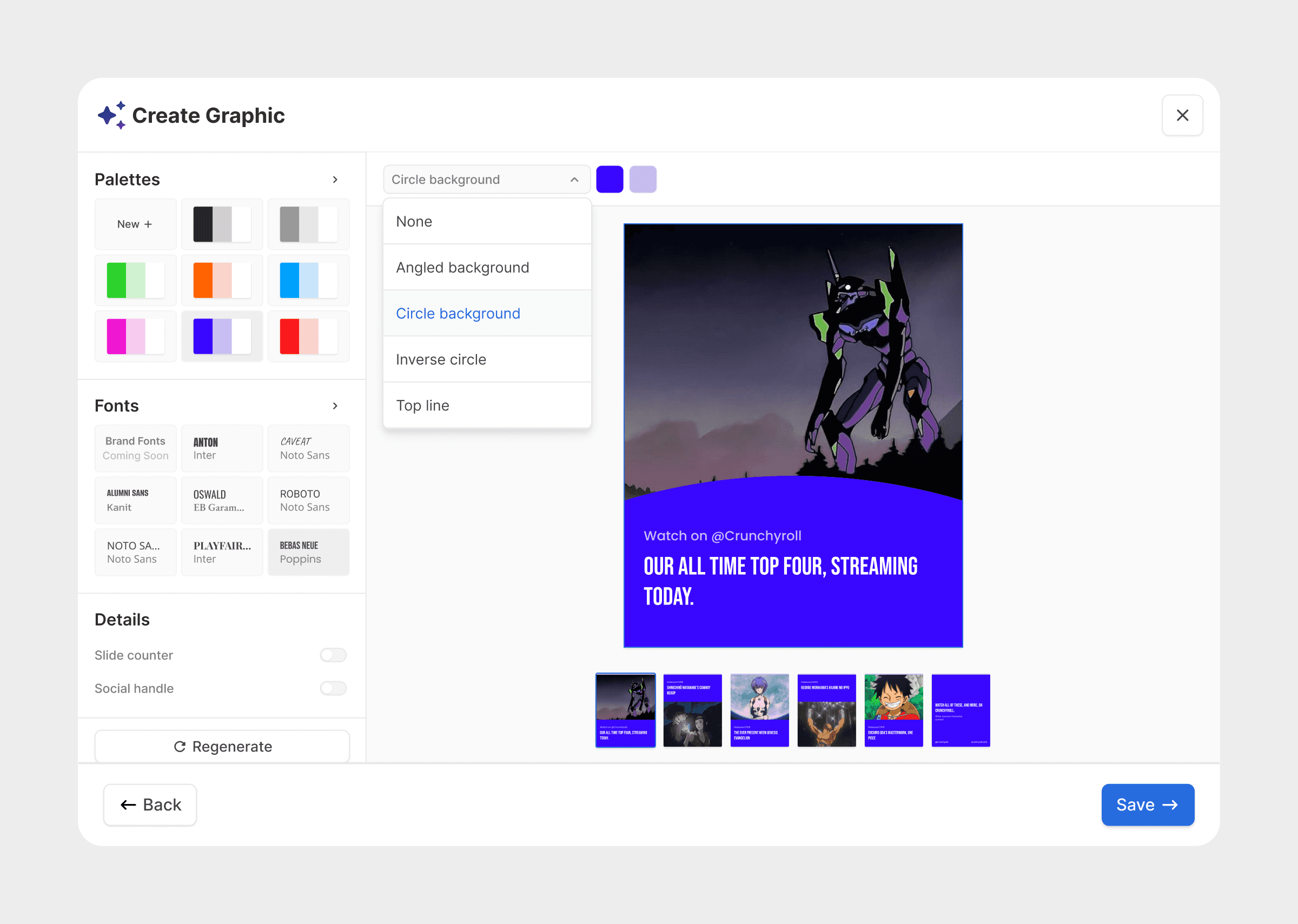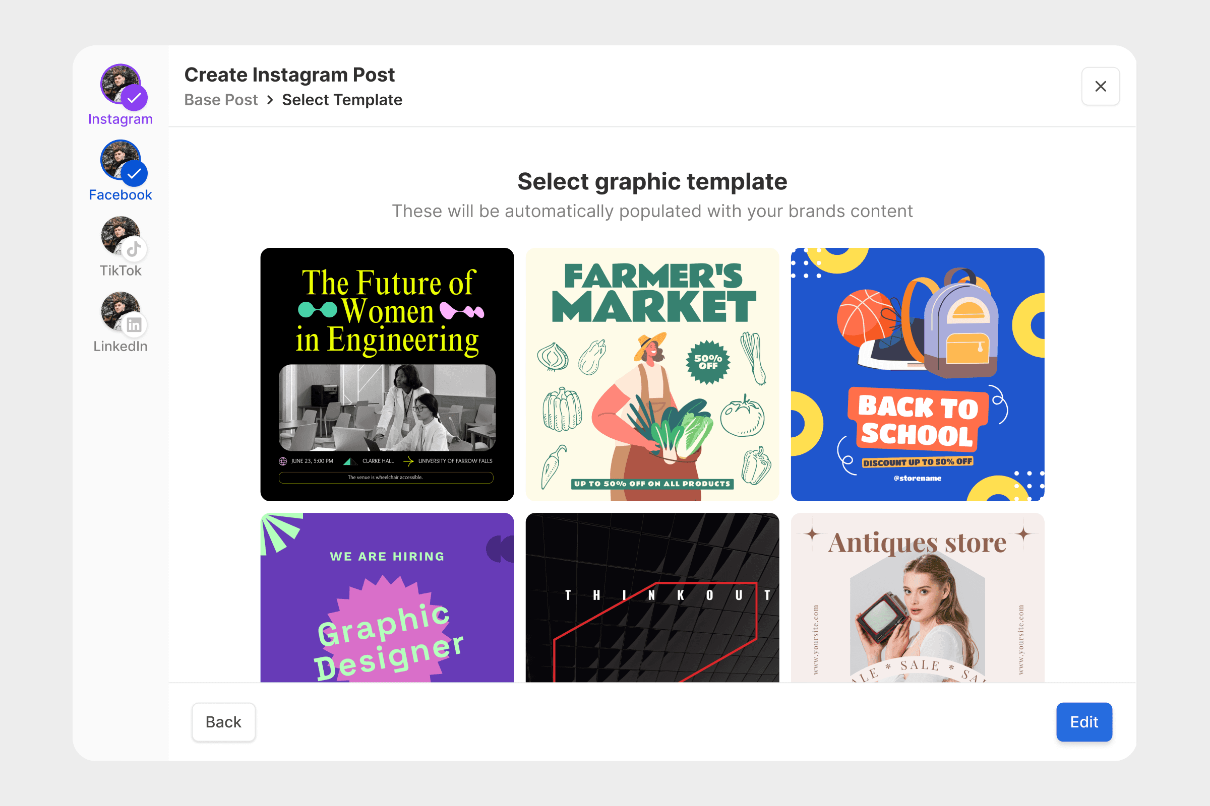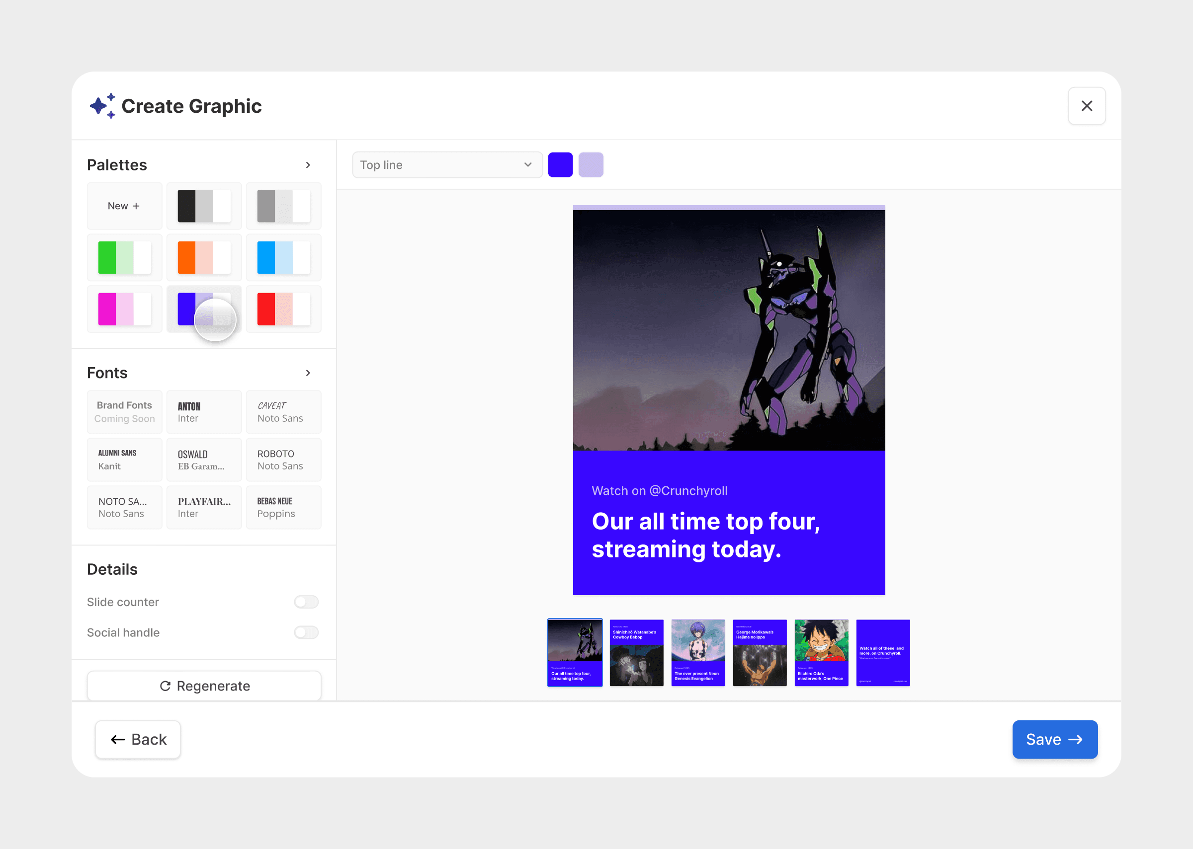 One of my major contributions was leading the design of a tool that utilised a pre-existing knowledge base to create brand conscious graphics for social media.
