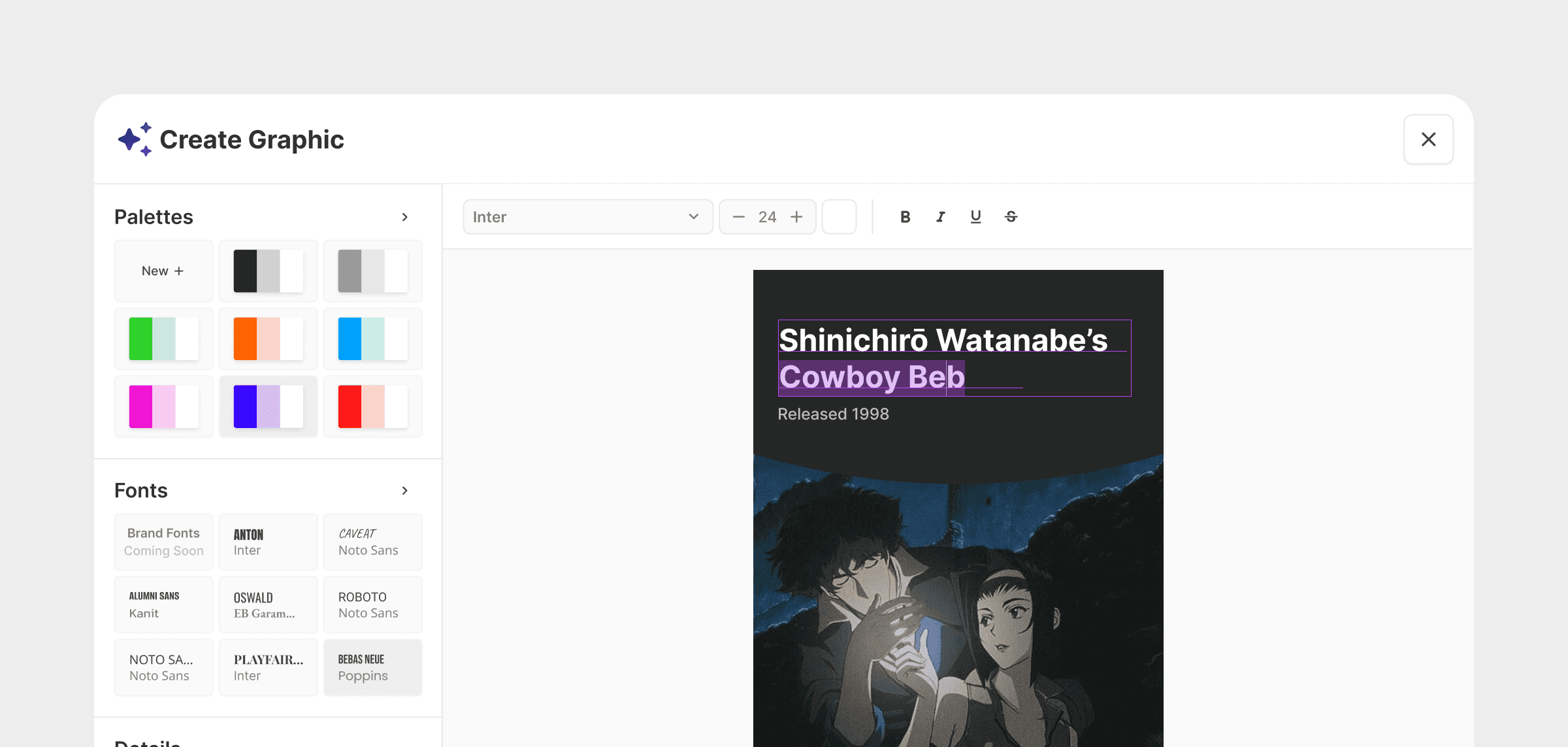 Graphic copy and imagery are generated using a caption.