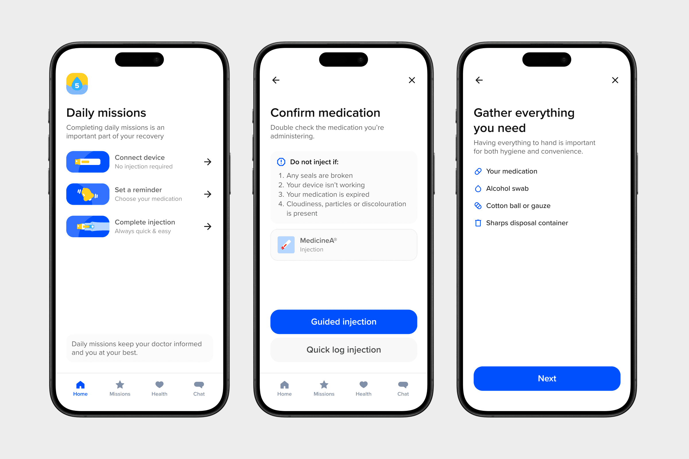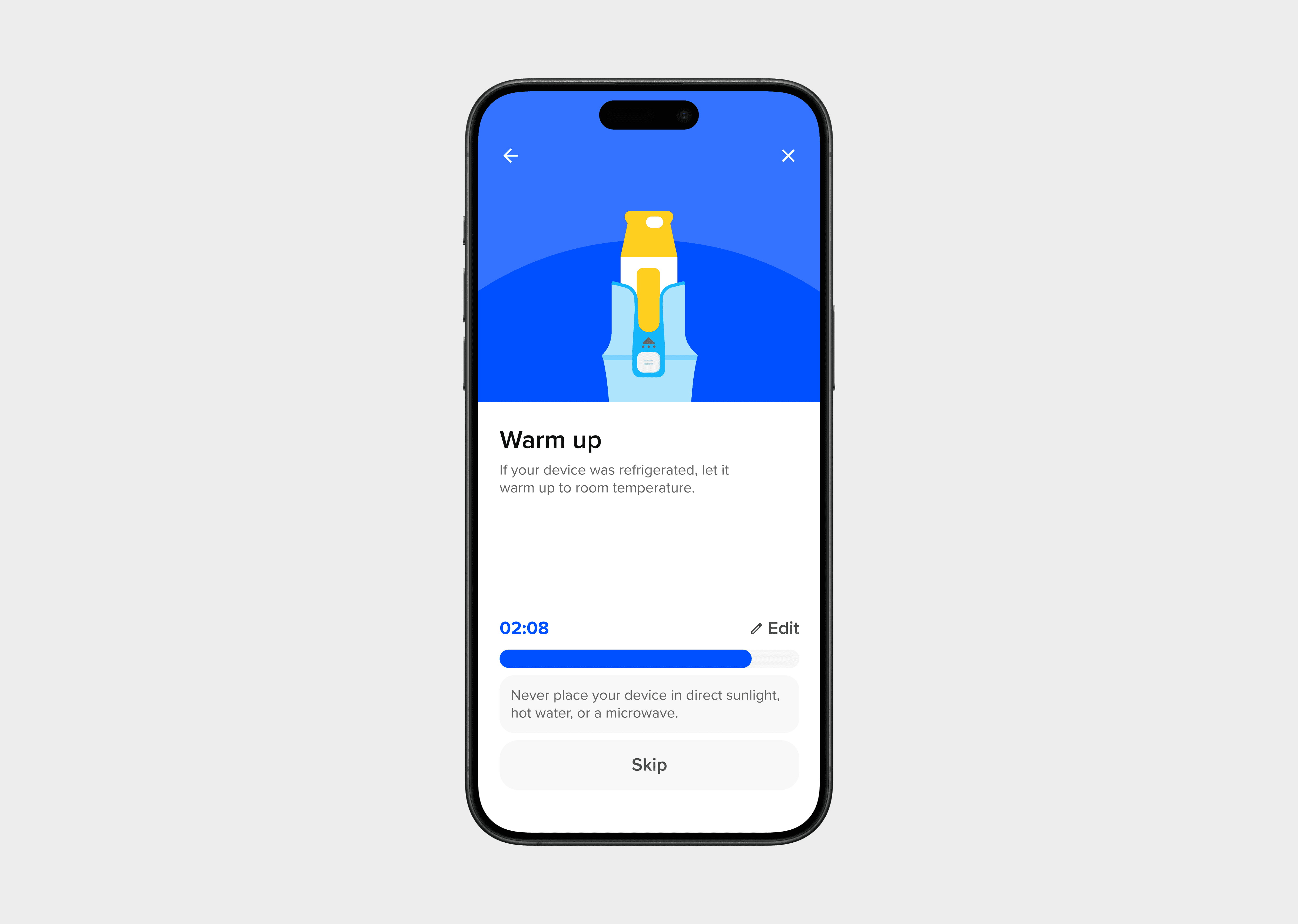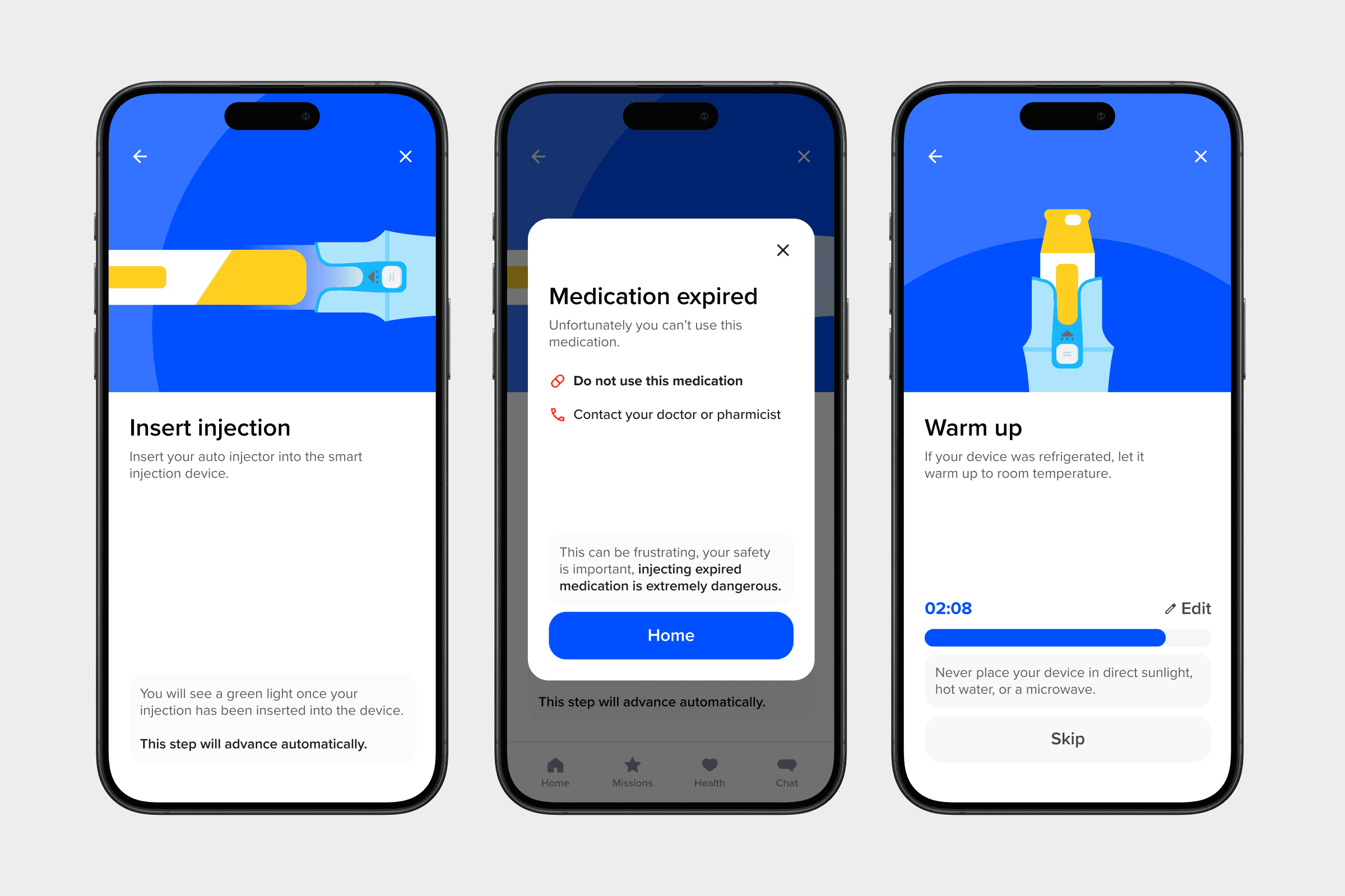 I designed simple illustrations to mimic the physical process of setting up a Bluetooth injection device.