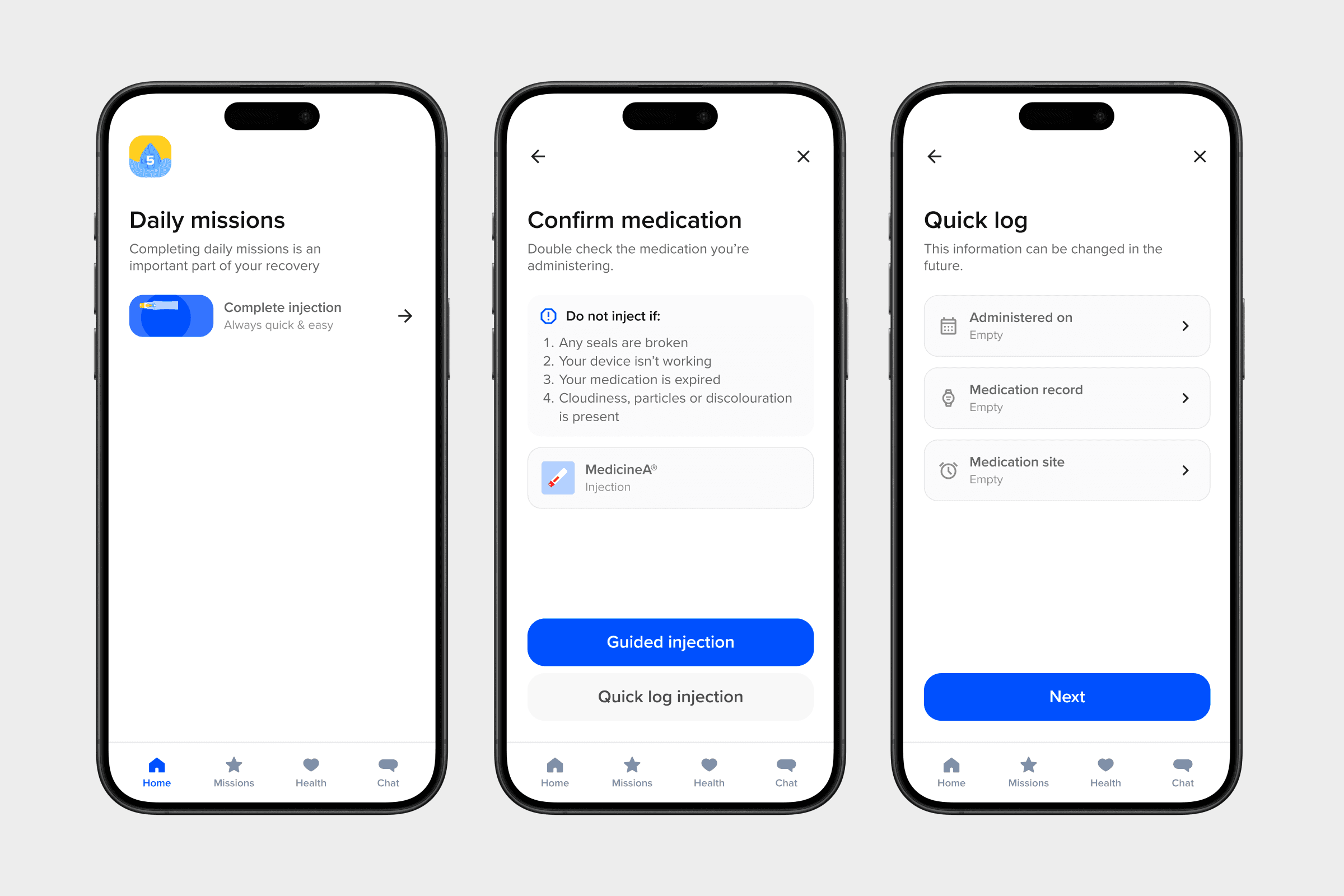 Experienced patients can log medication quickly to avoid unnecessary repetition, this still provides a clinician with any information they need.