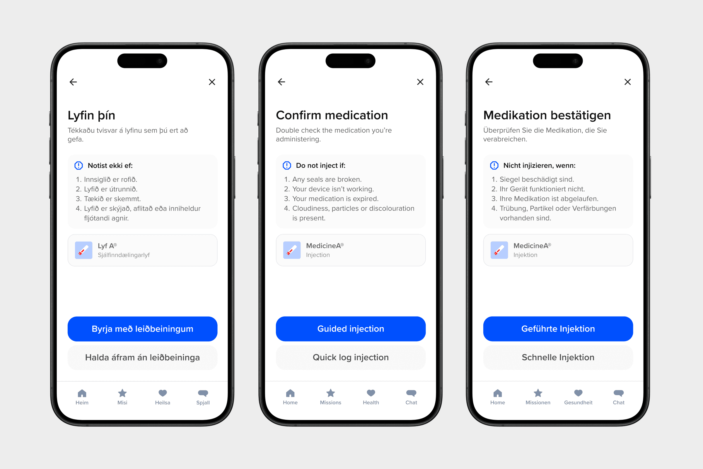 Regulations: Every flow supported multiple languages, and complied with FDA and EU MDR SaMD regulations, ensuring patient safety and increasing the likelihood of medication adherence which results in a higher quality of life, lower mortality and reduced healthcare costs.